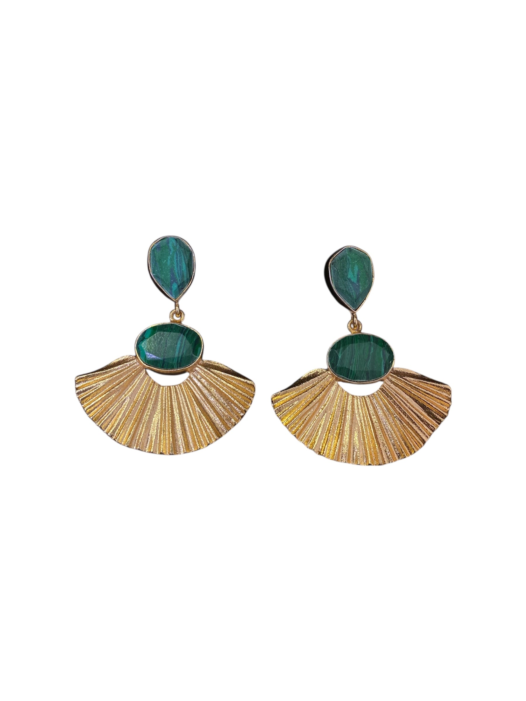 Diseño geométrico con detalle metálico texturizado tipo abanico. Pieza ligera que aporta un toque moderno y llamativo.