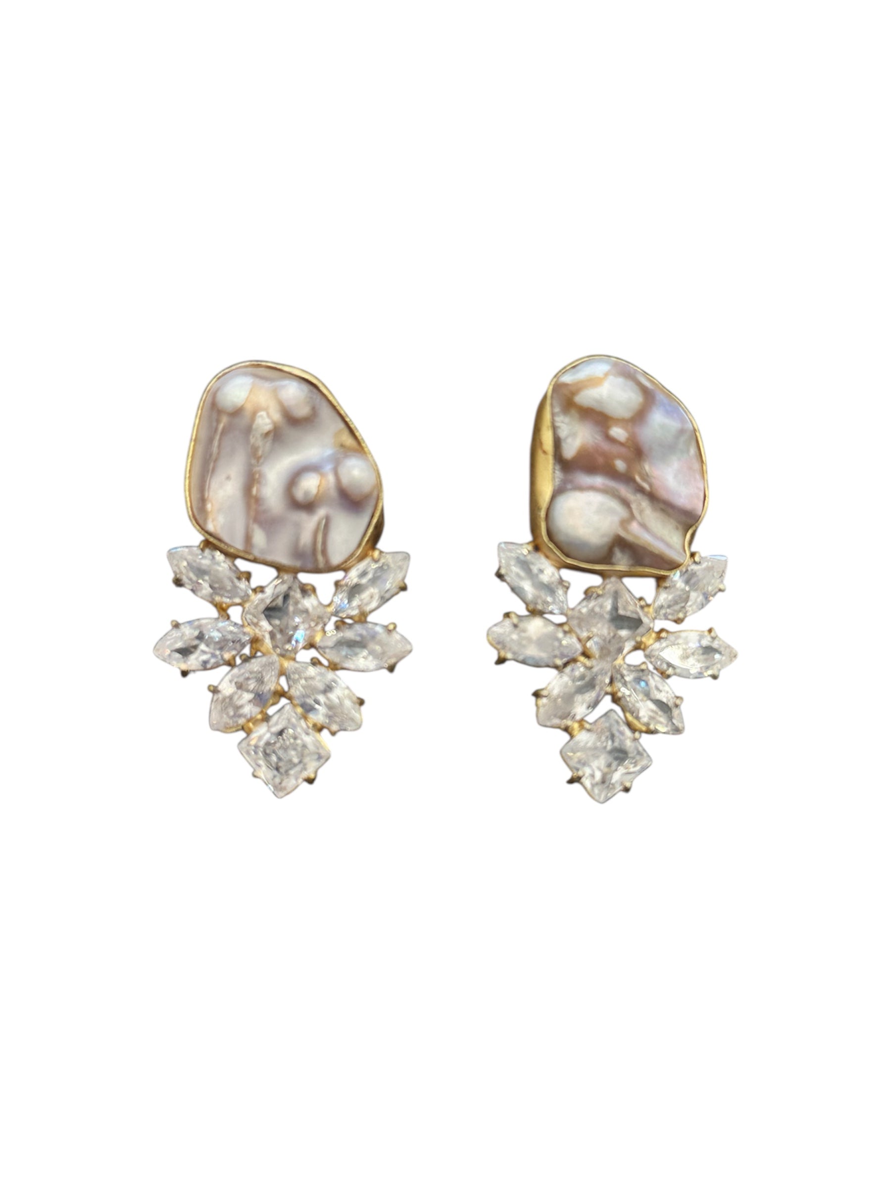 Diseño con base de perla irregular y composición inferior de cristales facetados en forma de flor. Una pieza luminosa que combina elegancia y frescura.