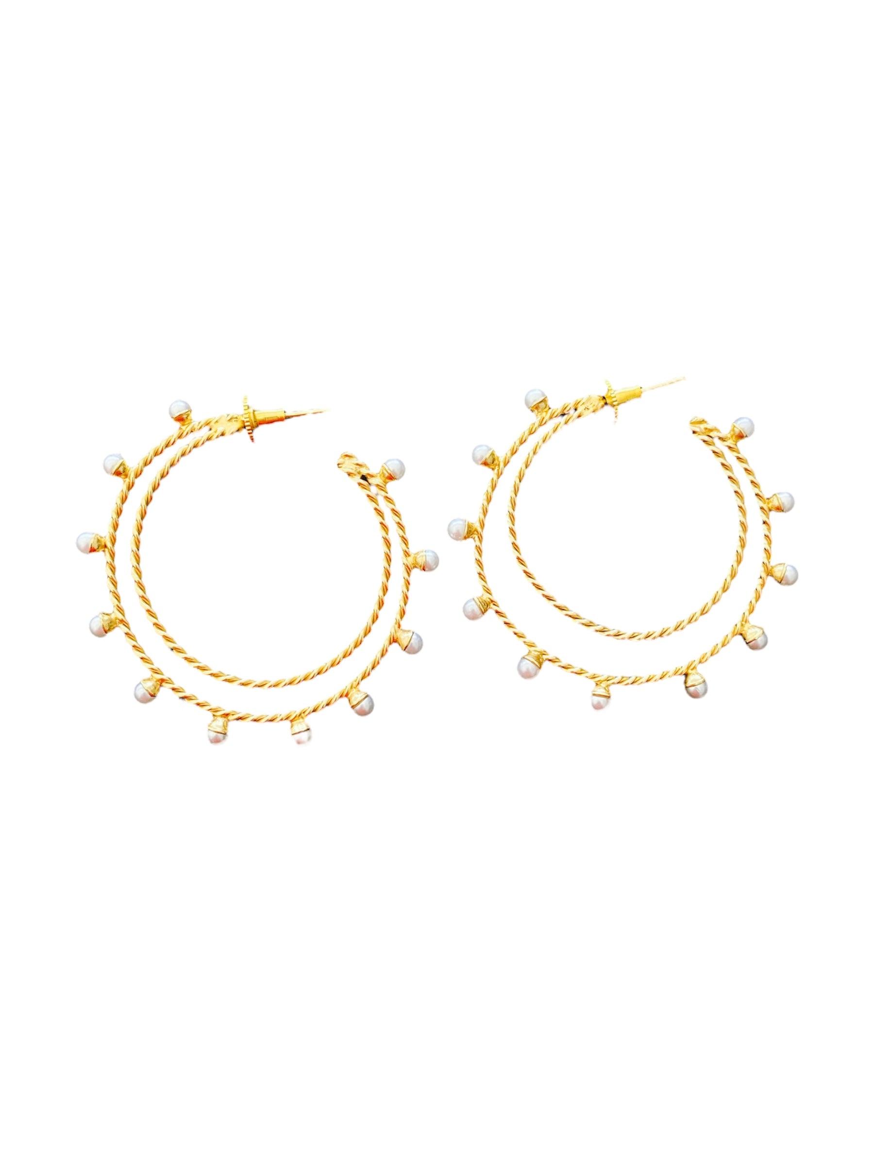 Aros dorados con mini perlas suspendidas. Juguetones, femeninos y perfectos para todos los días.