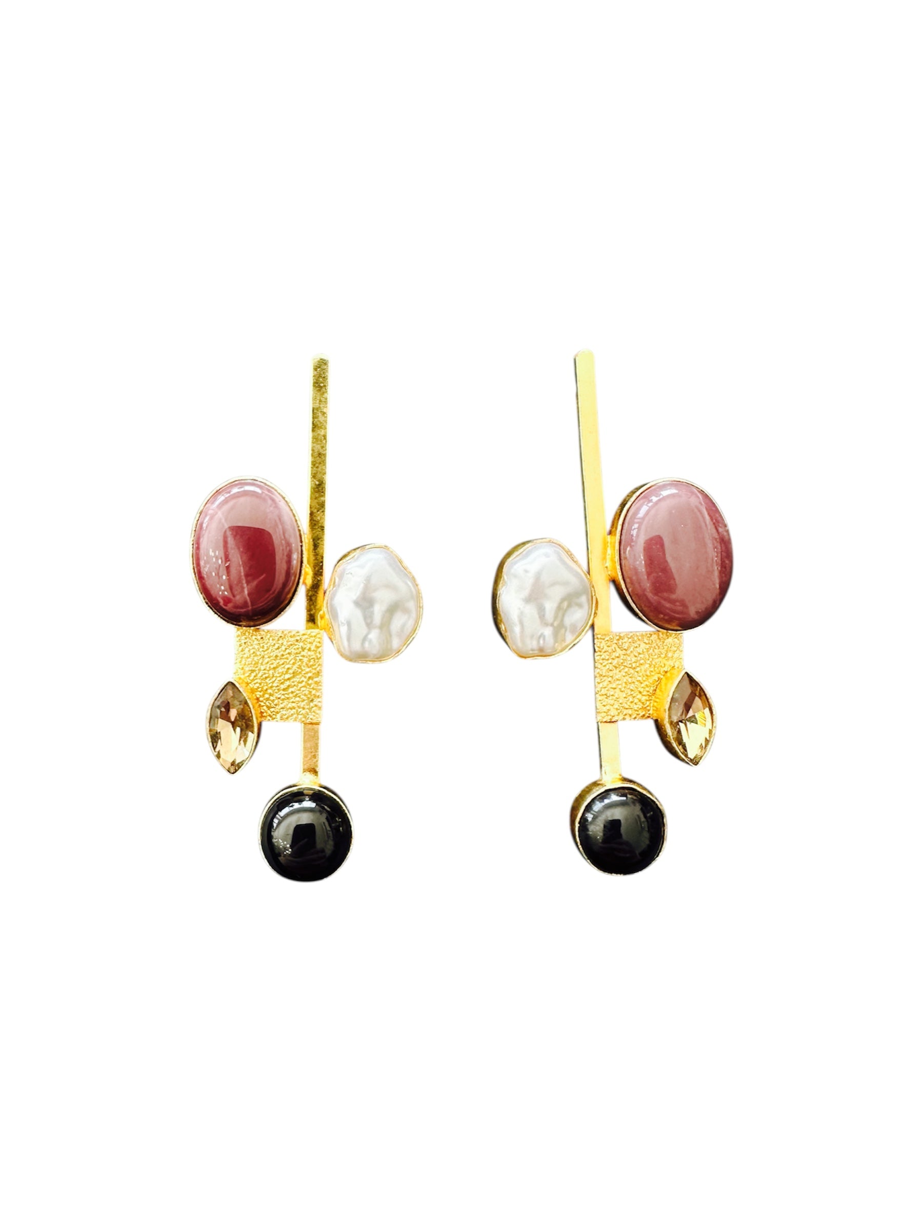 Composición moderna de líneas y formas geométricas con contraste de texturas y acabados.