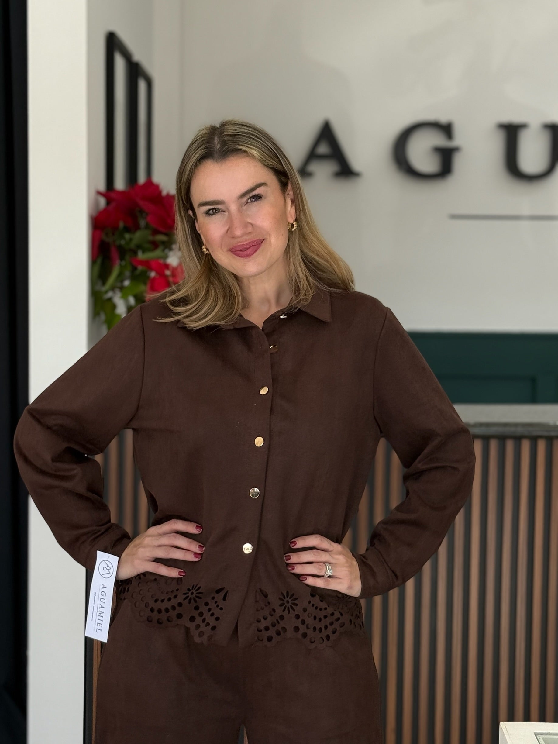 Set de dos piezas con detalle calado en bastilla. Su silueta relajada y elegante lo hacen ideal para verse arreglada con cero esfuerzo.