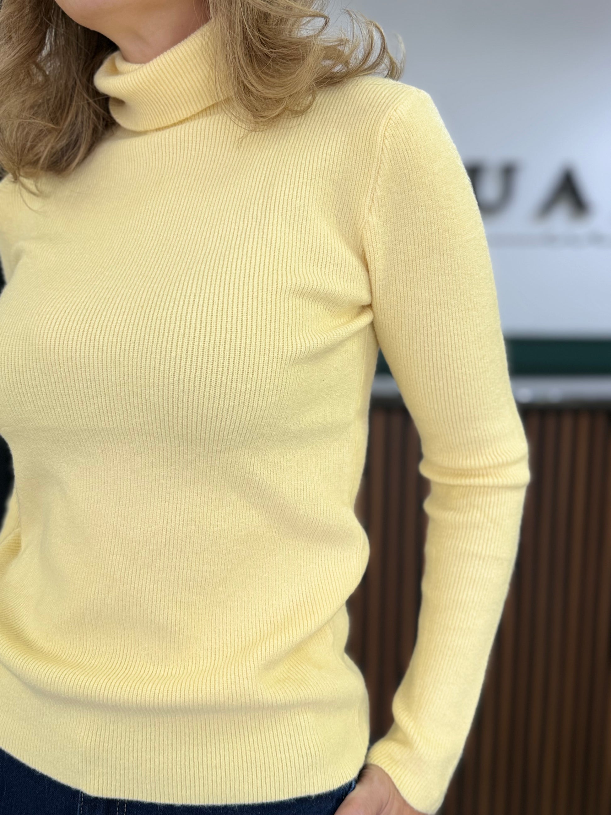 Suéter de punto delgado con cuello alto suave y fit ajustado tipo segunda piel. Ideal para usar solo o como base en looks de capas.