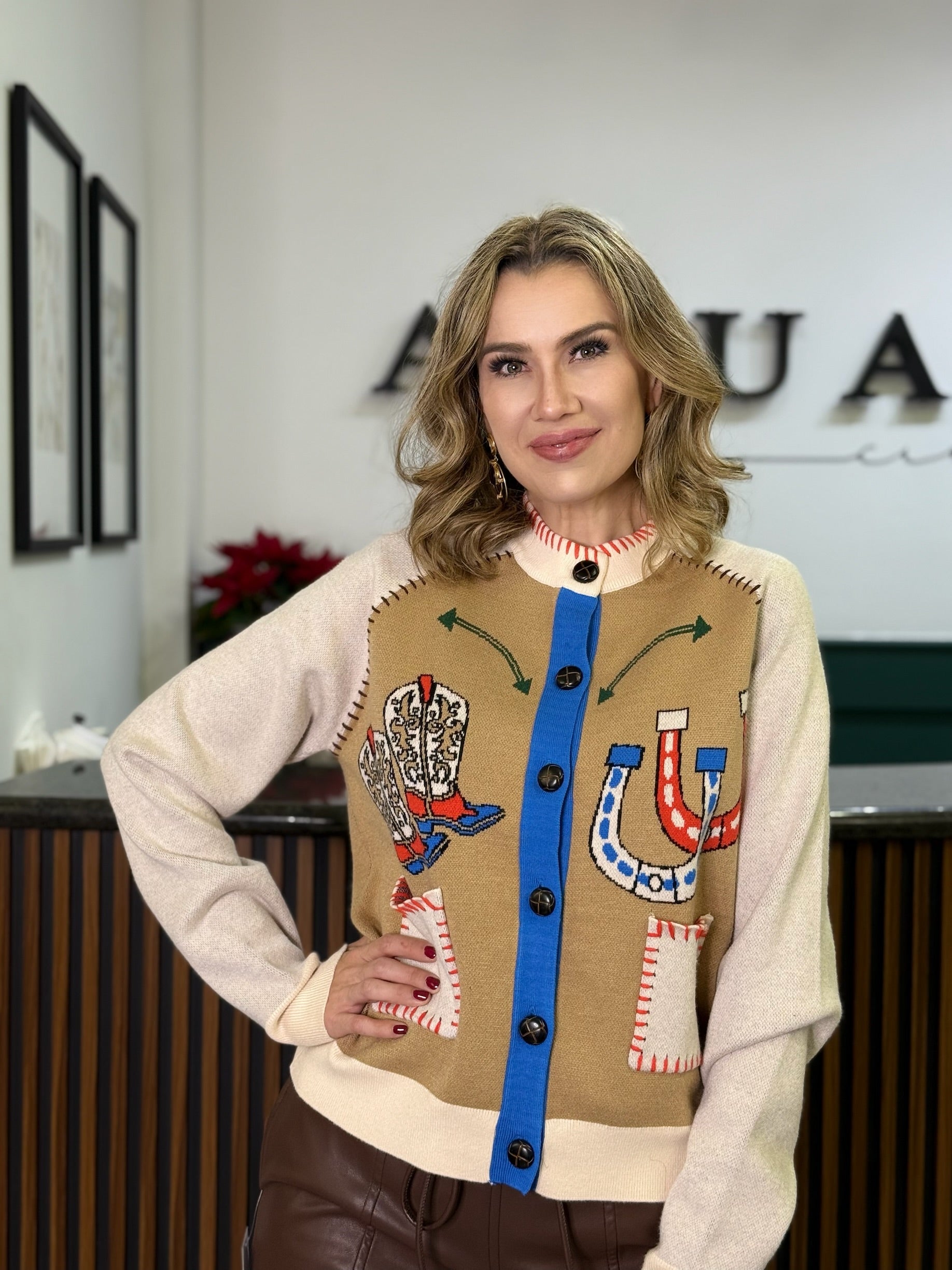 Sueter súper comodo con detalle de bota perfecto para esta nueva temporada, úsalo con jeans o con un pantalón vinipiel