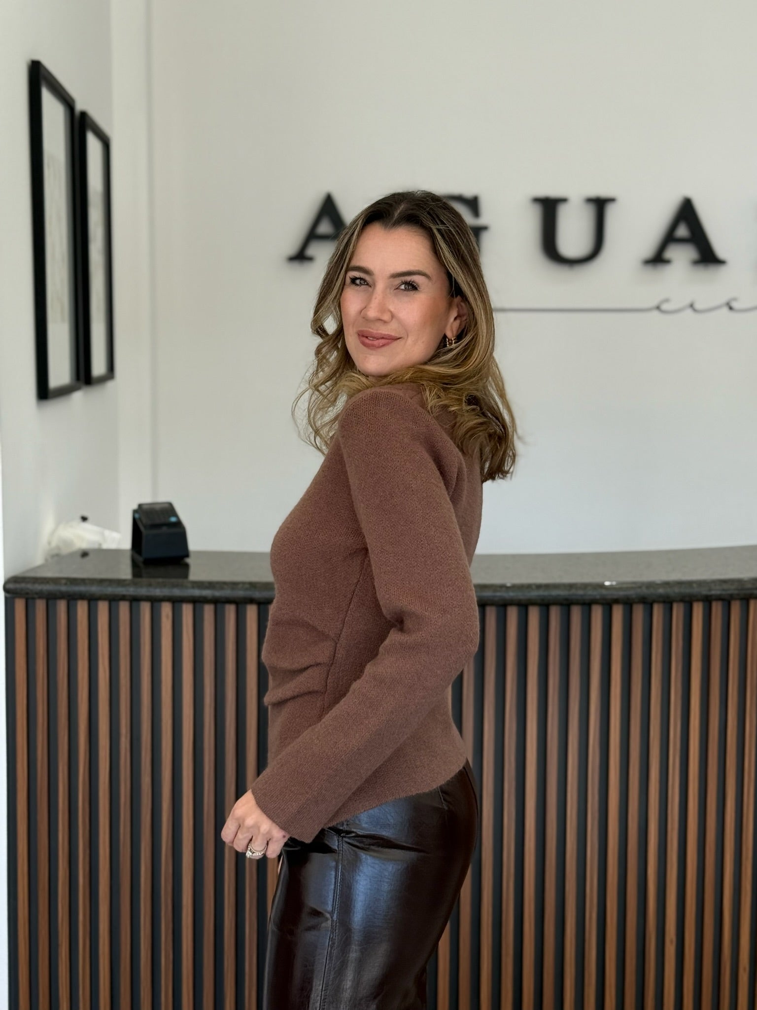 Suéter café fruncido